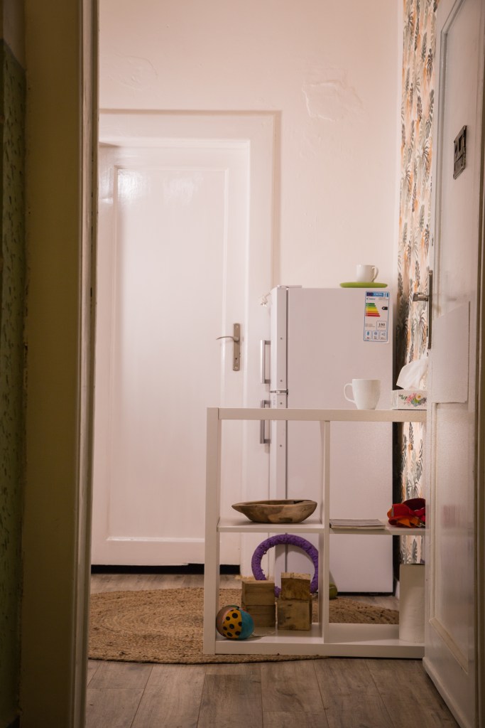 Naše místo má dvě oddělené místnosti, pohovky na ležení, spoustu místa na dovádění a spoustu hraček.
